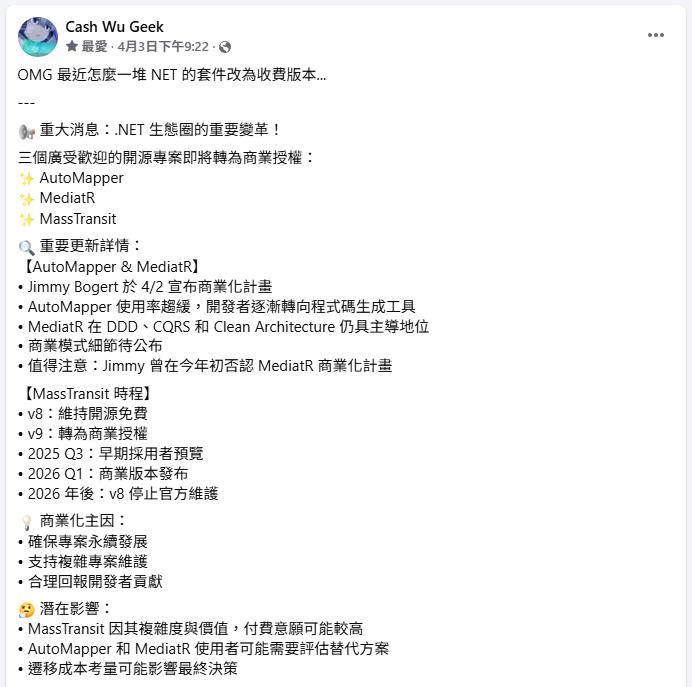 某天在一堆專案的商業邏輯連番轟炸後的下班歸途中,開啟手機滑著 Facebook 的訊息,看看最近同溫層有沒有什麼新鮮事,然後就在「Cash Wu Geek」看到了這一篇