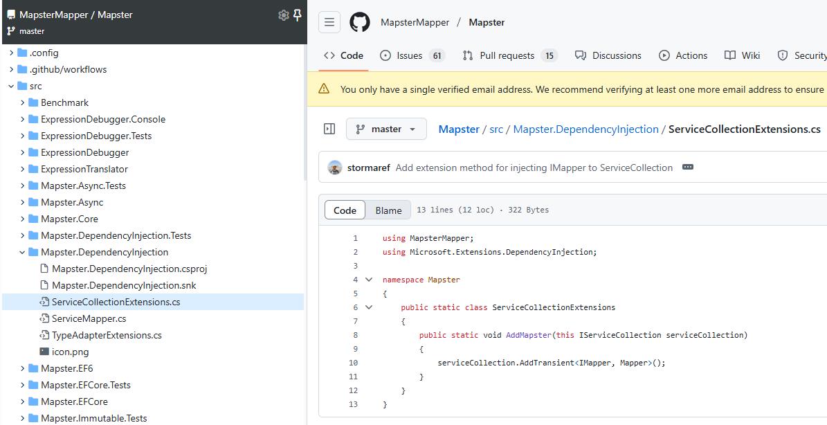 雖然 Mapper.DependencyInjection 有個 AddMapster() 靜態擴充方法,但這個方法就只是個簡單的方法
