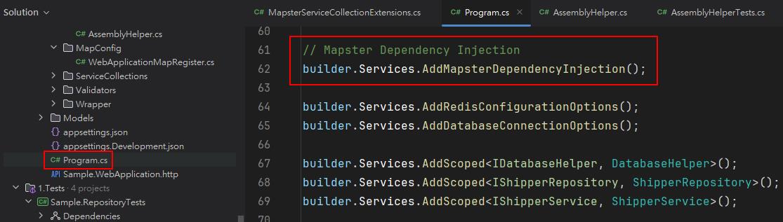 最後在 Program.cs 裡使用 AddMapsterDependencyInjection 方法就完成 DI 設定