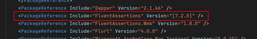 <PackageReference Include="FluentAssertions" Version="[7.0.0]" />如此 NuGet 將只還原 7.0.0,不會自動拉取 8.x 以上版本,同時仍可獲得官方釋出的安全與重要更新。
