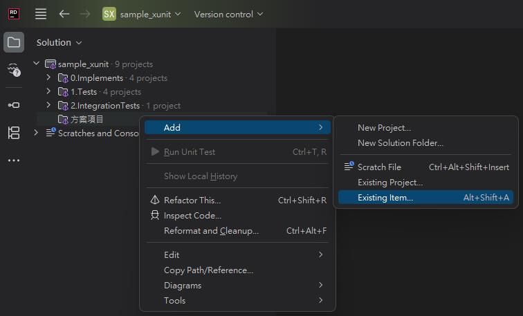 如果你和我一樣是使用 Rider 的話,就依照以下的方式將Directory.Build.targets檔案給加入為方案項目