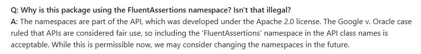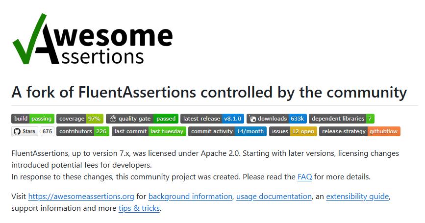 直到後來得知原來有個從 Fluent Assertions 分支出去的另一個版本叫做「AwesomeAssertsions」,於是我直接果斷改用 AwesomeAssertsions