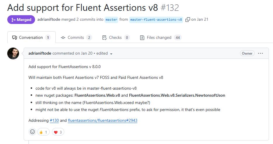 - https://github.com/fluentassertions/fluentassertions/pull/2943