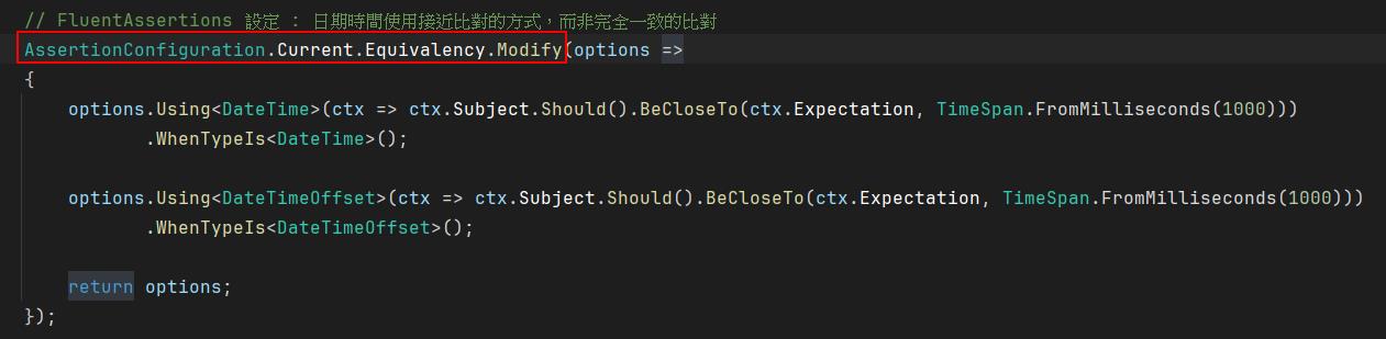 在 FluentAssertions 8.x 中,已經移除了舊有的 AssertionOptions 靜態類別,現在要更換為「AssertionConfiguration」(FluentAssertions 與 AwesomeAssertions 都一樣)