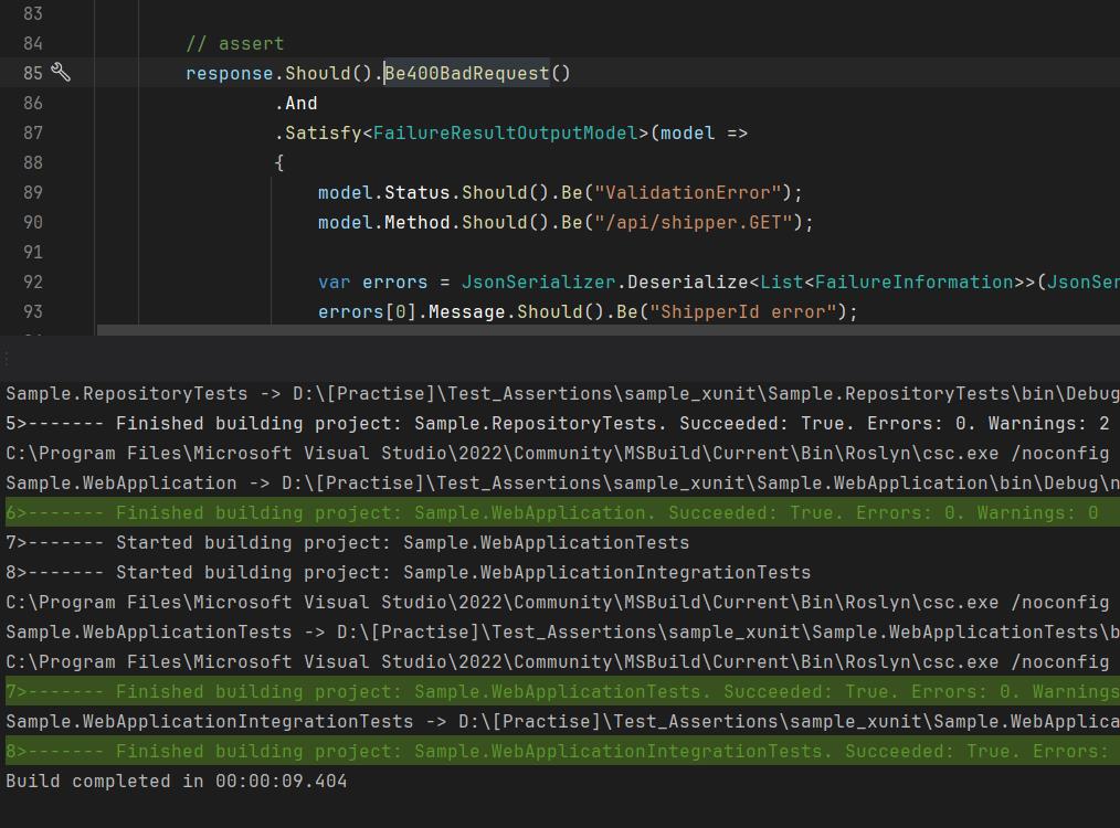 例如以下是原本使用 FluentAssertsions.AspNetCore.MVC 寫法