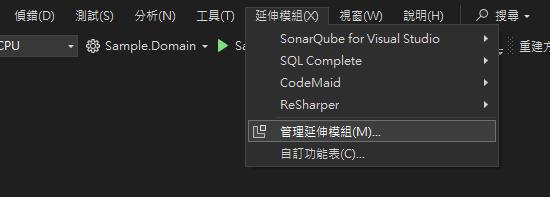 Visual Studio 上方功能列「延伸模組」→「管理延伸模組」
