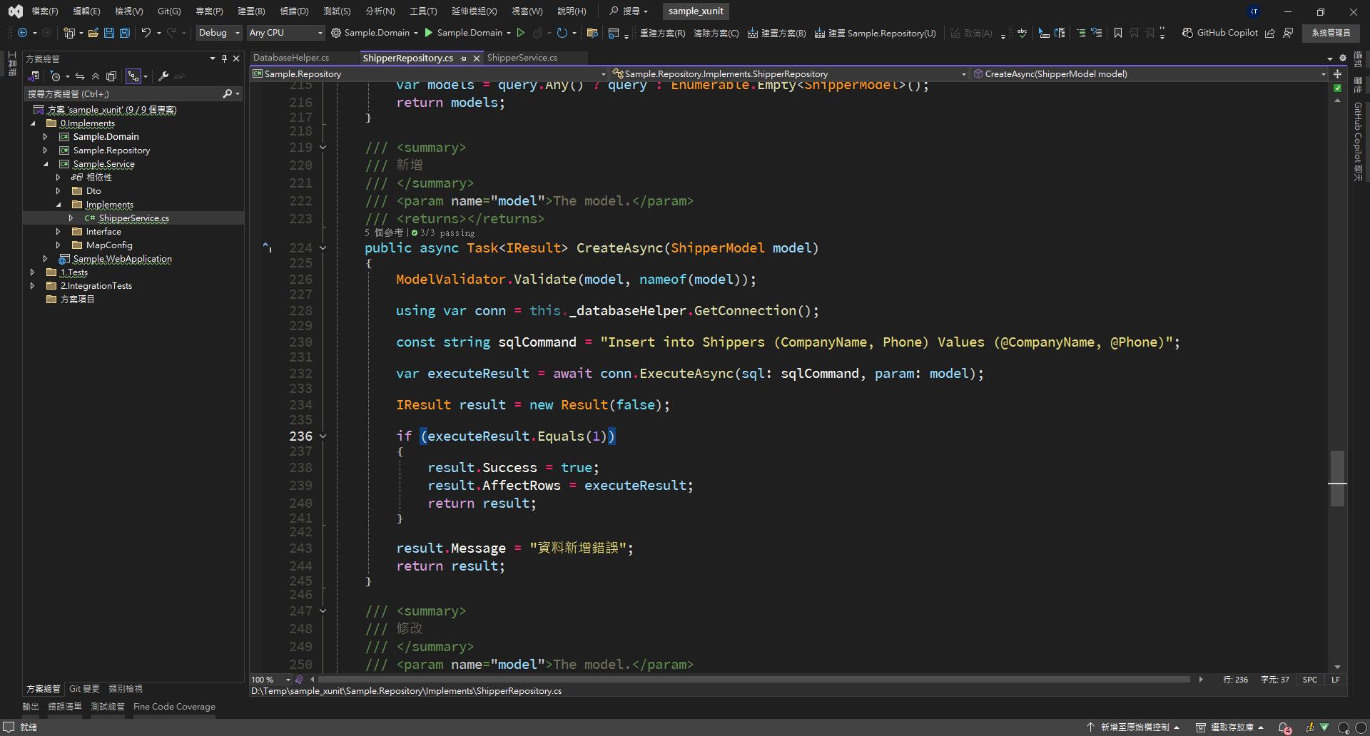 展開 Sample.Service 並點選 Sample.Service.Implements.ShipperService
