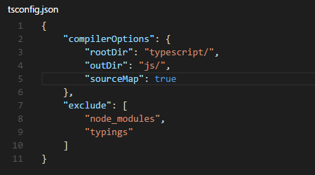 在此, 我把 node_modules 及 typings 的目錄都排除, 不去對它們裡面的 *.ts 做編譯
