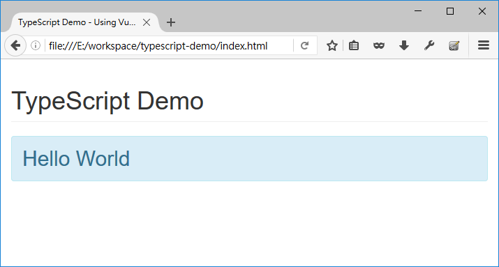 在未編譯 app.ts 檔案之前, 在瀏覽器看到的畫面是這樣的, 表示還沒有成功載入 js/app.js 的內容, 因為我們還沒做編譯動作