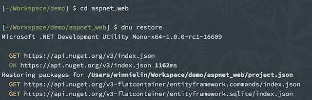 - 安裝 .NET Execution Environment (DNX) - 開發用的 SDK 及執行 runtime 環境