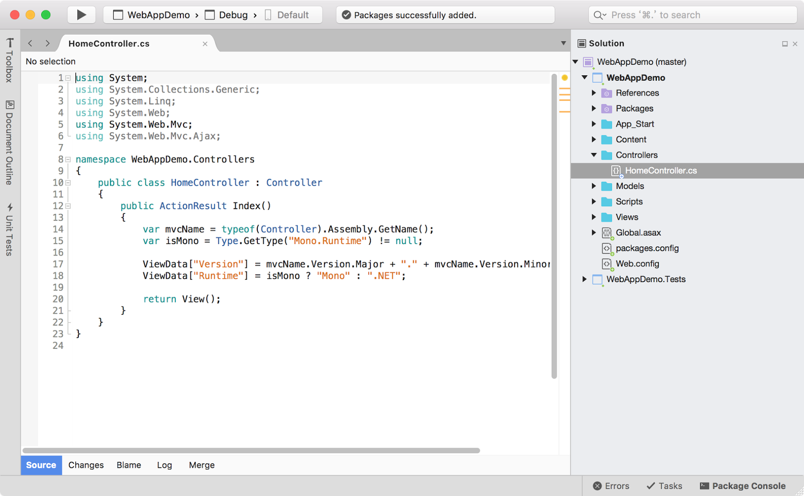 WOW... 而且我把專案 clone 到 Windows 以 Visual Studio 2015 一樣可以順利開啟專案耶!微軟真是太酷了!
