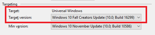 step 1. 將專案 target version 選擇到 16299 或以上