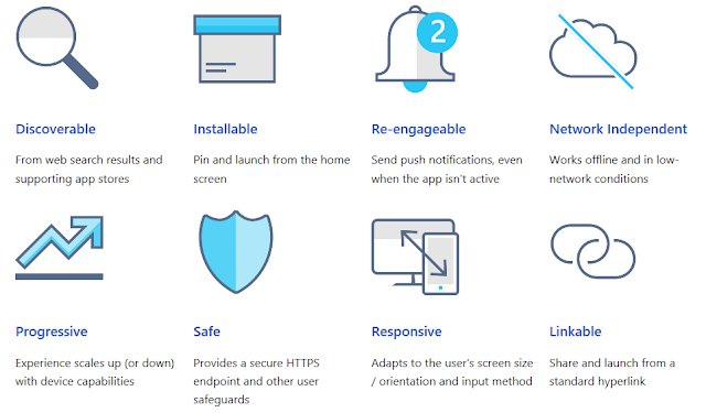 根據 Progress Web Apps on Windows 的介紹,要做到好的 PWA apps,需要滿足下圖特點: