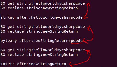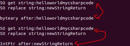 Console.WriteLine("IntPtr after:" + Marshal.PtrToStringAnsi(MyPtr));