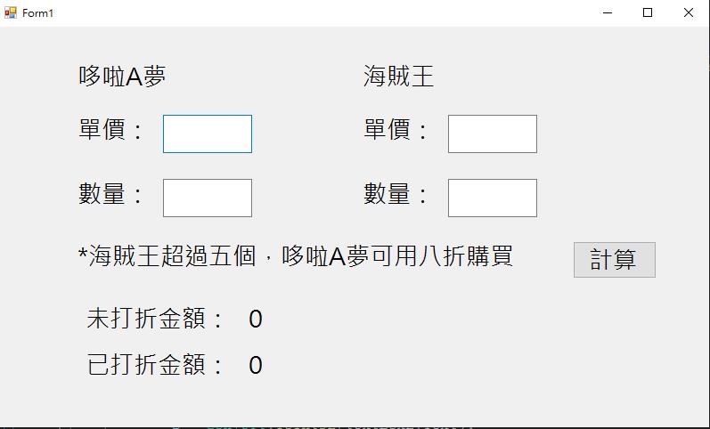 A = Convert.ToInt32(textBox1.Text); //讀取 A夢的單價