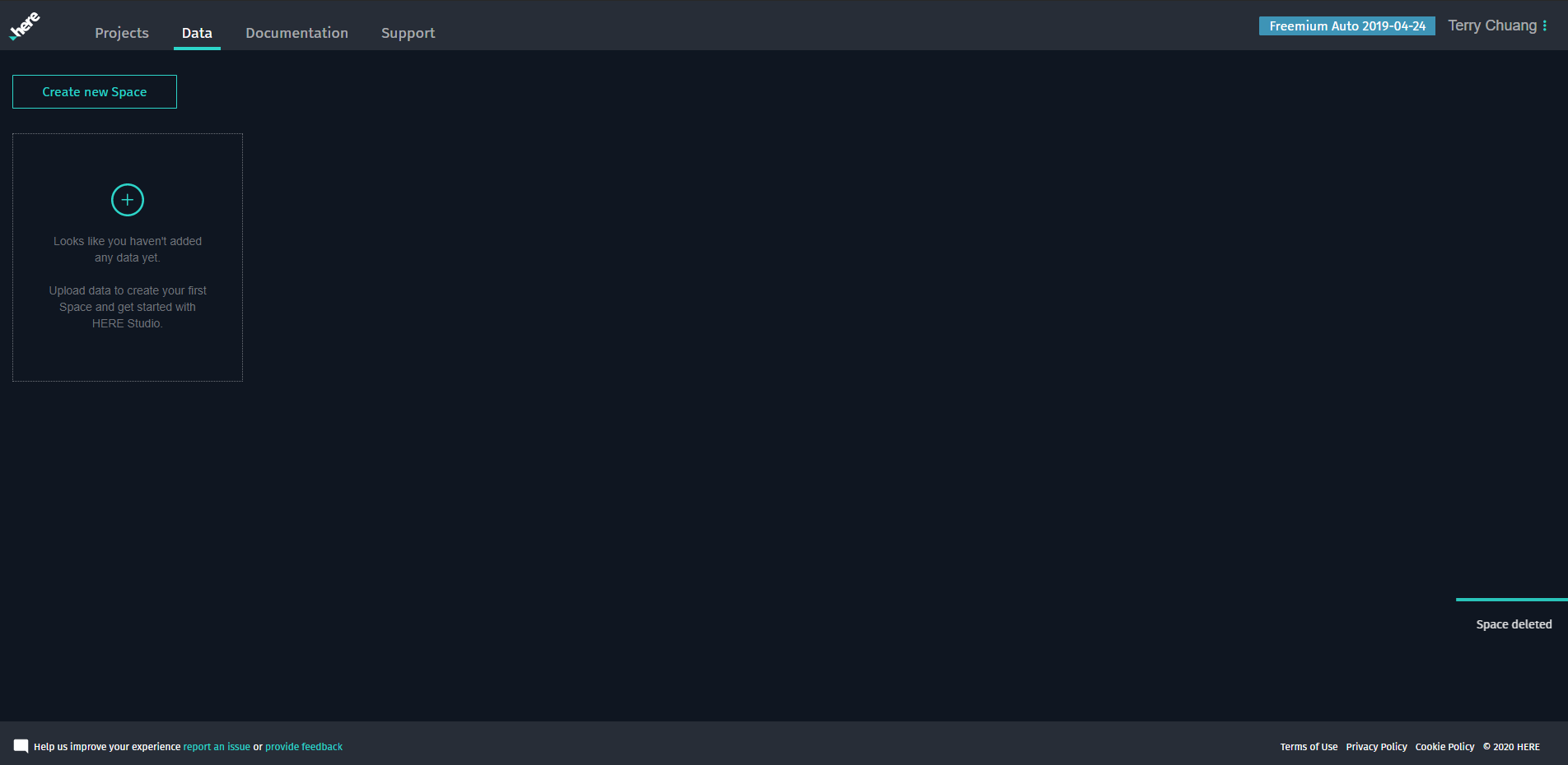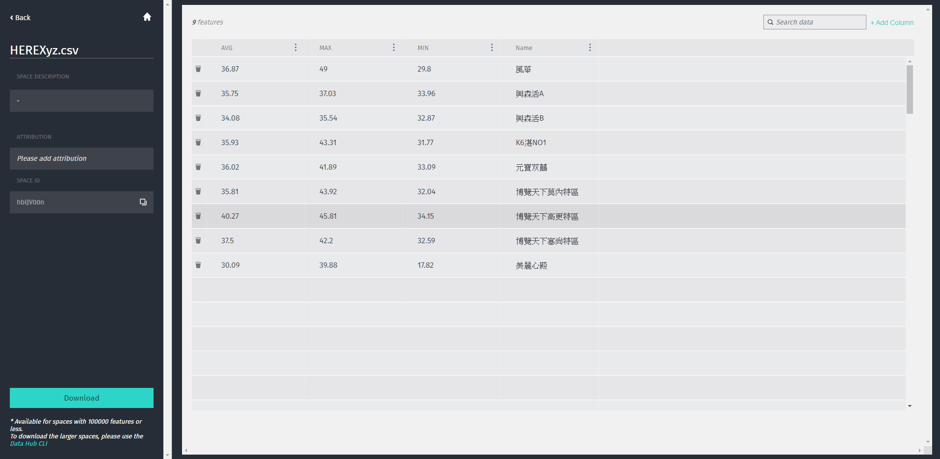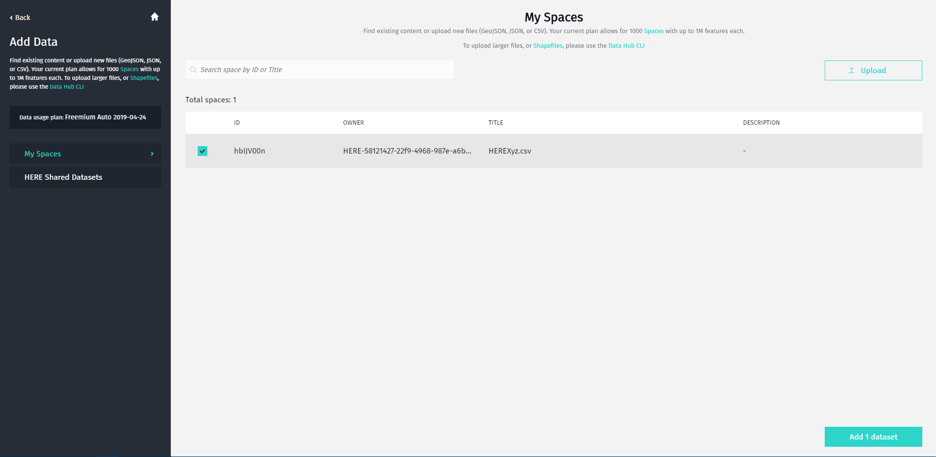 回到HERE Studio首頁就可以看到剛剛上傳的資料集。