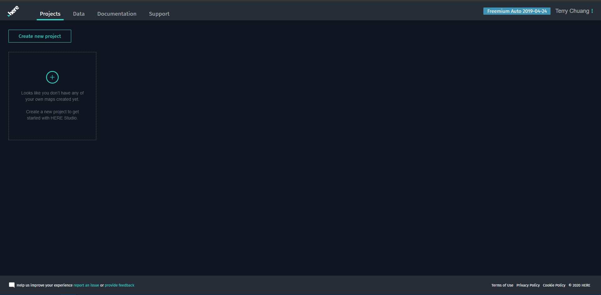 本節將介紹如何建立HERE Map地圖專案,這是分享個人化或客製化地圖的第一步。