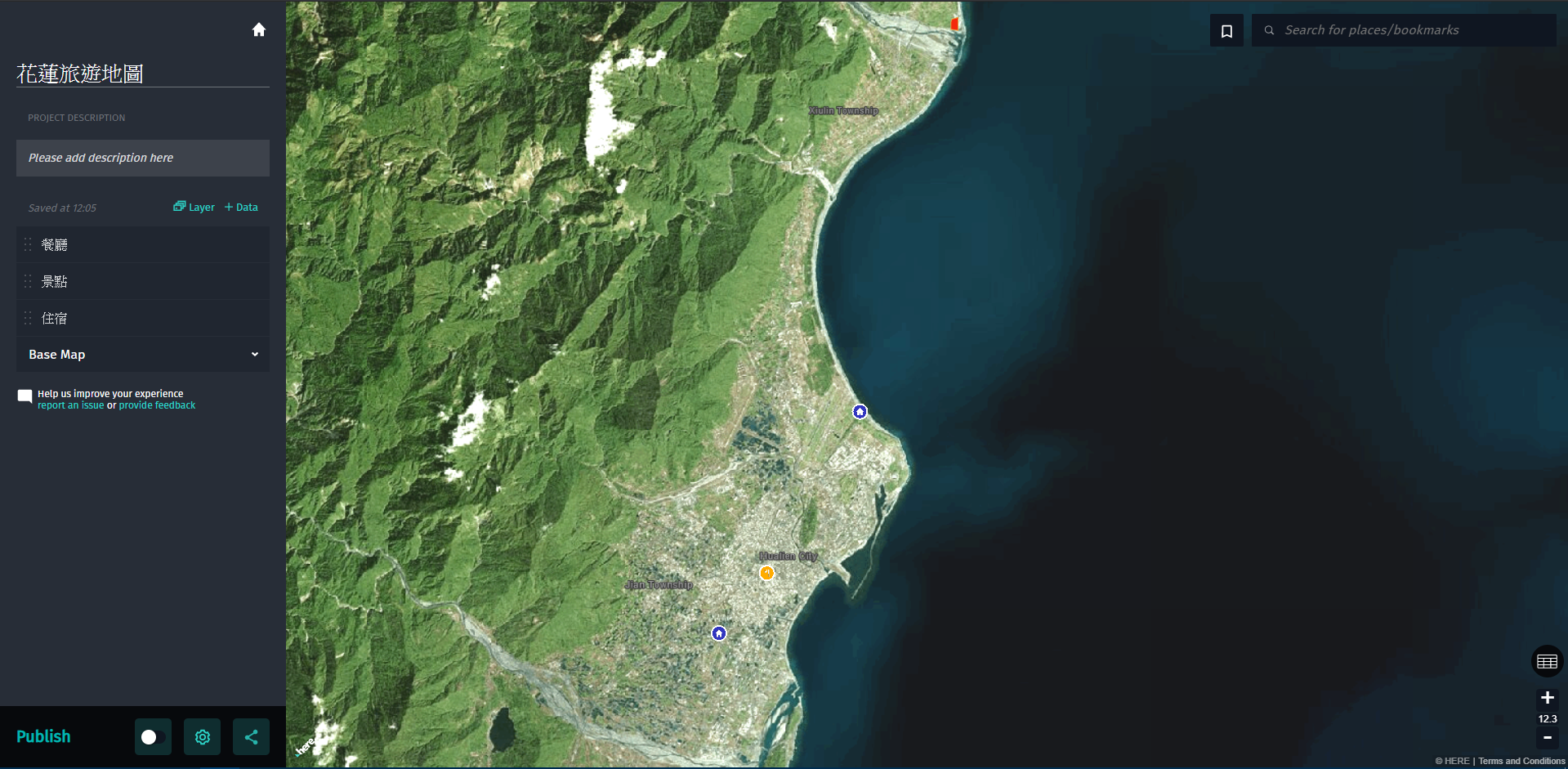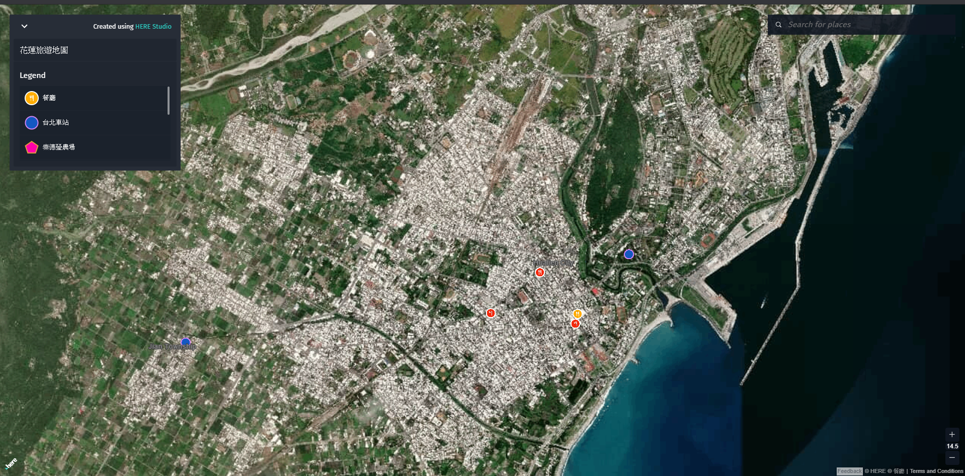假設我們正規畫花蓮三天兩夜的小旅行,希望可以透過HERE Studio來規劃相關景點的旅遊路線,這次我們透過手動方式來完成客製化地圖。