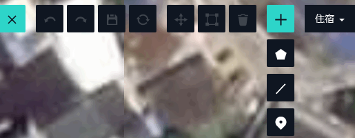接下來開始建立旅遊景點,因此先建立一個景點的圖層,接著新增一個景點,用來標示崇德螢農場,由於農場範圍廣大,剛好可以用來示範建立範圍,請點選【+】之後,選擇第一個選項來標示範圍。