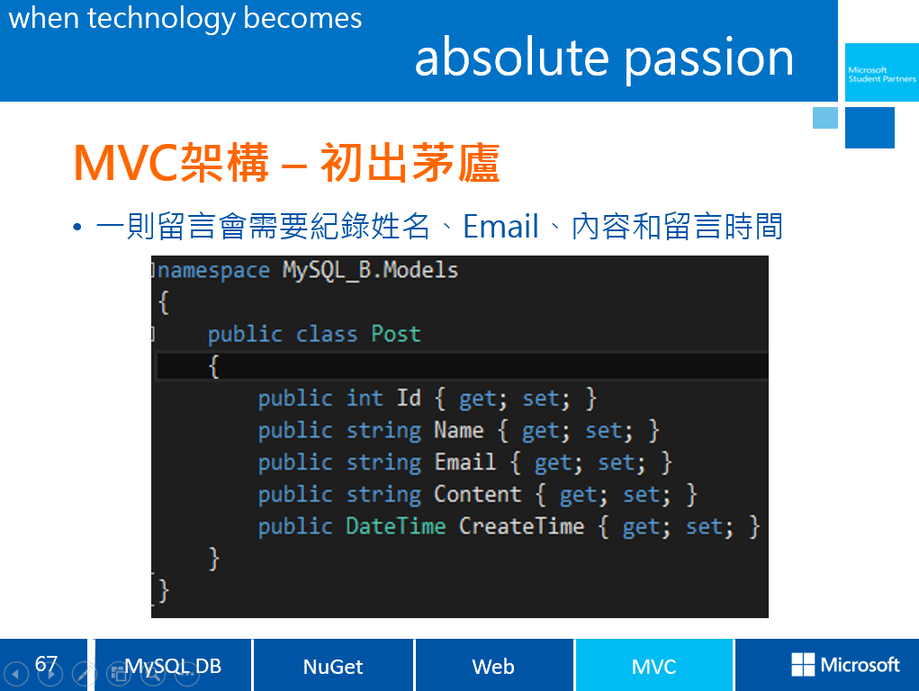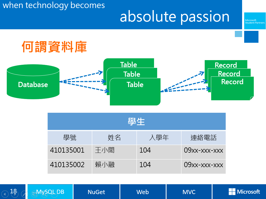 微軟學生大使最近才剛舉辦完 Azure Workshop中最後的活動- MySQL資料庫講堂,在這講堂中介紹了如何在Azure上建立MySQL資料庫,並在程式中讀取及儲存資料到資料庫中,當中還包含了資料庫基礎介紹、Entity Framework介紹及使用和MVC架構介紹等等,下方附上檔案、教學教案PPT以及成果預覽圖。