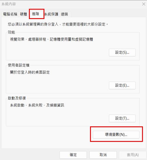 開啟後會有兩個部分,上方是這次要處理的【使用者變數】,下方則是系統變數
