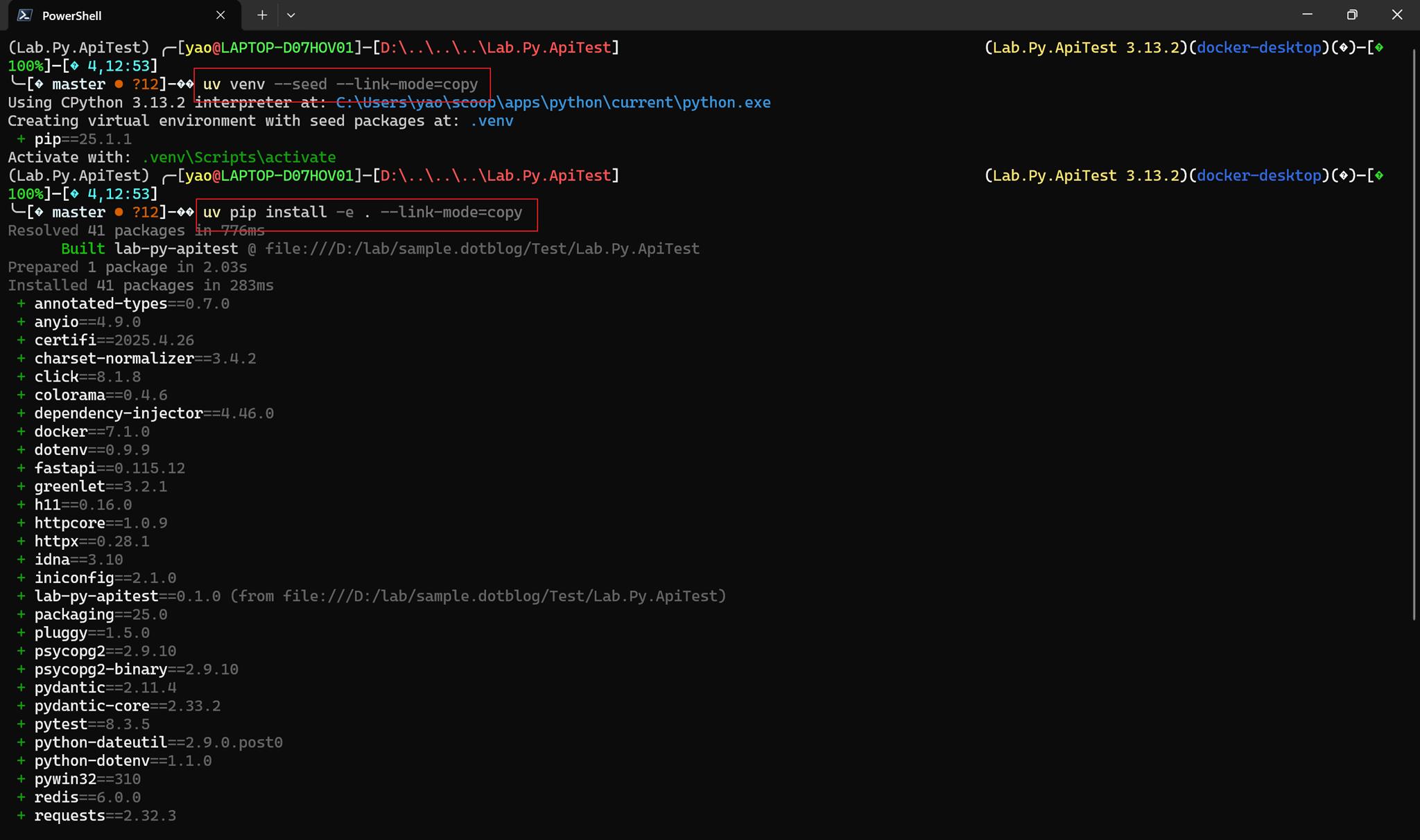 uv add "dependency-injector>=4.46.0" "dotenv>=0.9.9" "fastapi>=0.115.12" "httpx>=0.28.1" "psycopg2>=2.9.10" "pydantic>=2.11.2" "pytest>=8.3.5" "python-dateutil>=2.9.0.post0" "sqlalchemy>=2.0.40" "testcontainers-postgres>=0.0.1rc1" "testcontainers-redis>=0.0.1rc1" "uvicorn>=0.34.0"