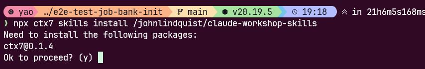 npx ctx7 skills install /johnlindquist/claude-workshop-skills