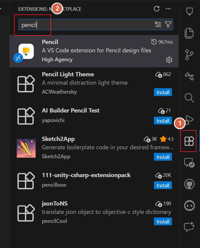 在 VSCode 擴充套件找到 pencil