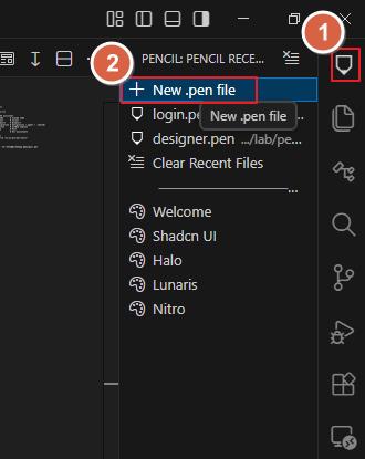 在 AI 編輯器中新增一個 .pen 檔案作為設計稿的容器。這是你設計工作的起點。