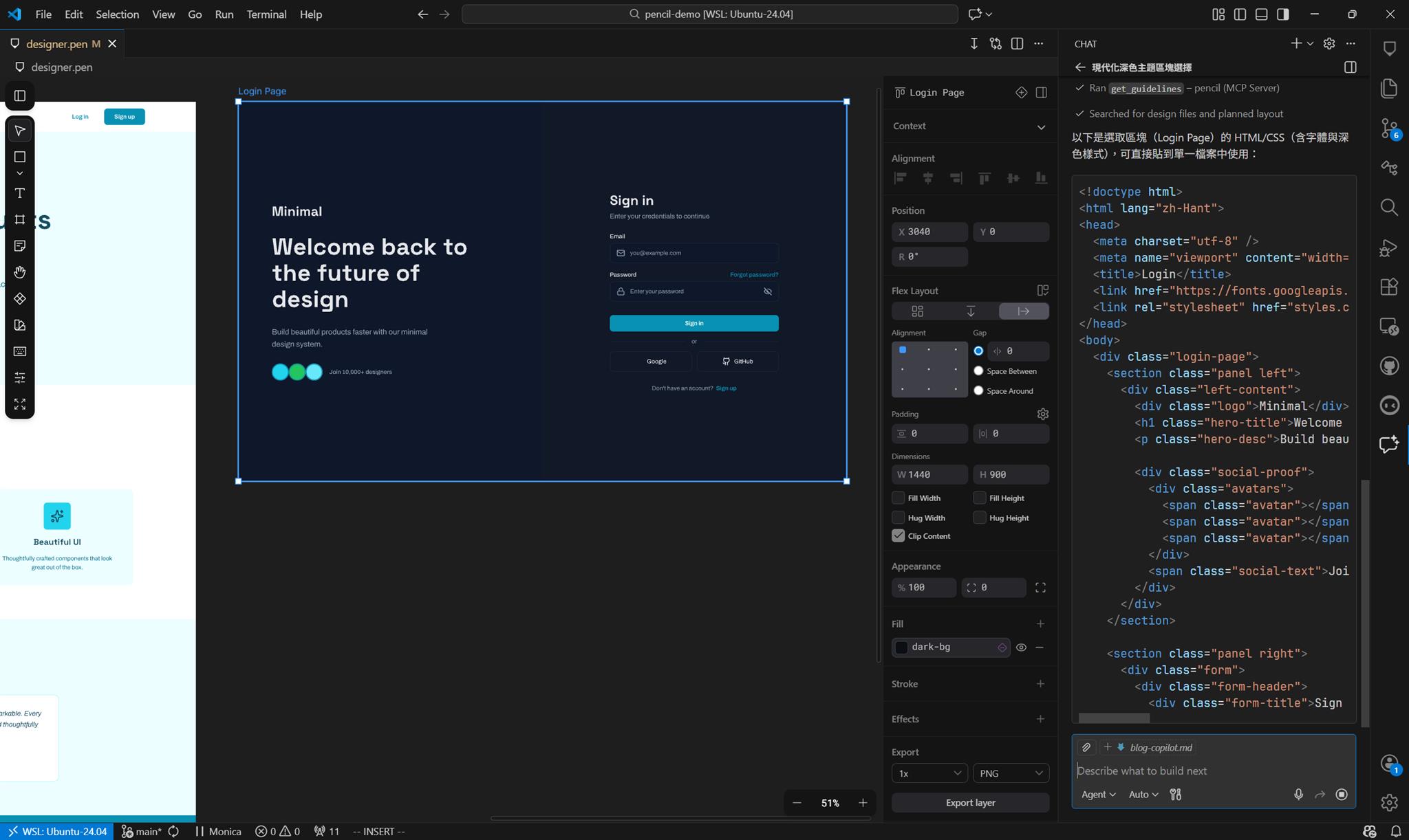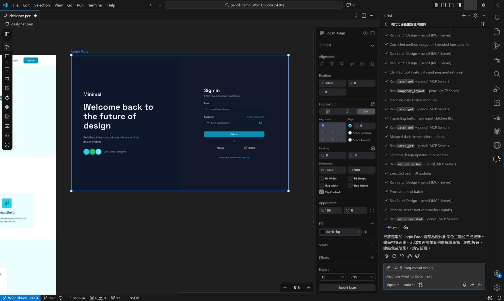 Pencil 結合 AI 助手的力量,改變了設計流程的效率方程式。不必從零開始手工製作每個設計元素,而是利用 AI 的生成能力快速產生初版設計,再透過迭代逐步完善。