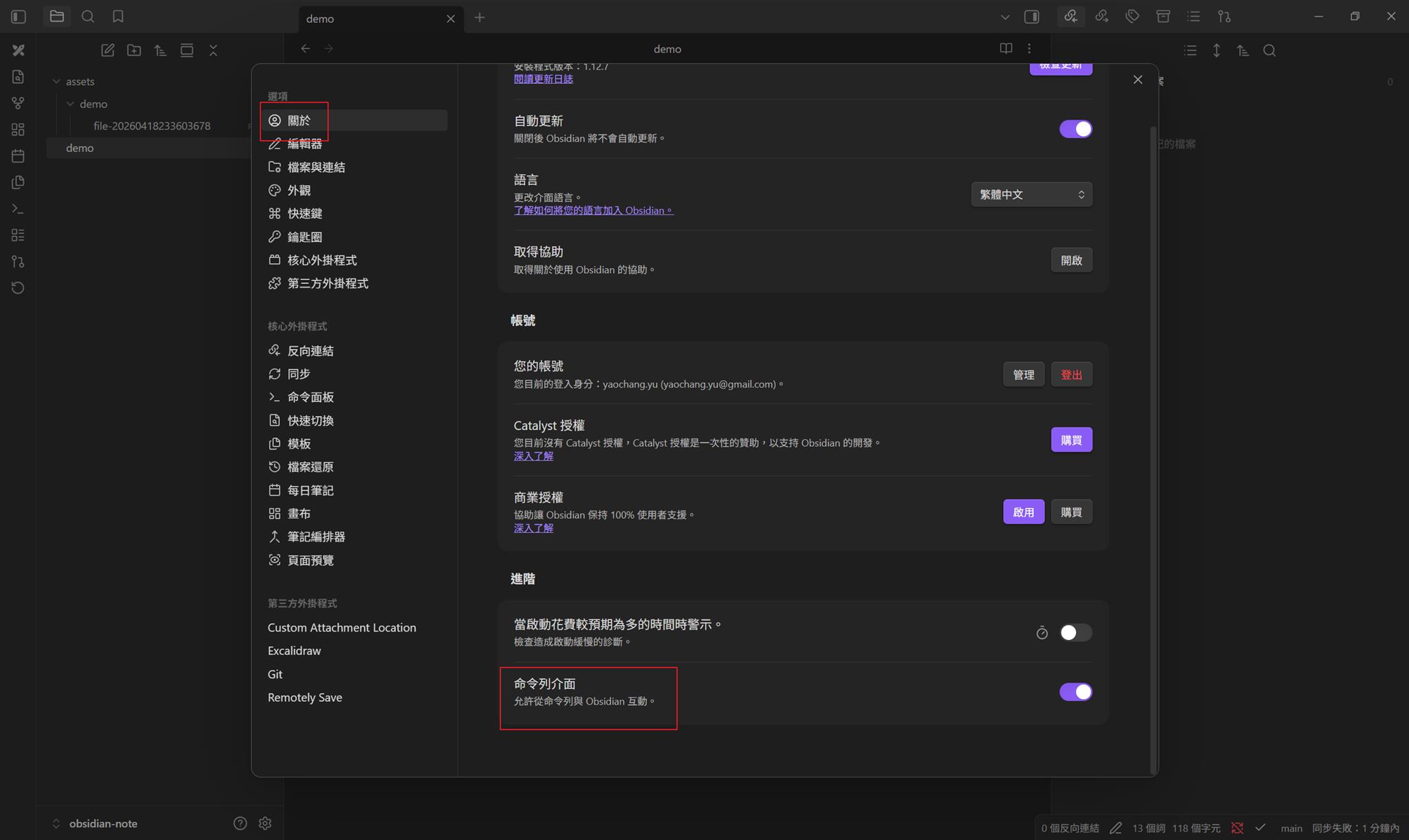 允許應用程式用 cli 互動,這功能不能單獨運作,必須要開啟 Obsidian UI 才行