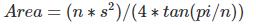 Area = (n*s**2)/(4*math.tan(math.pi/n))