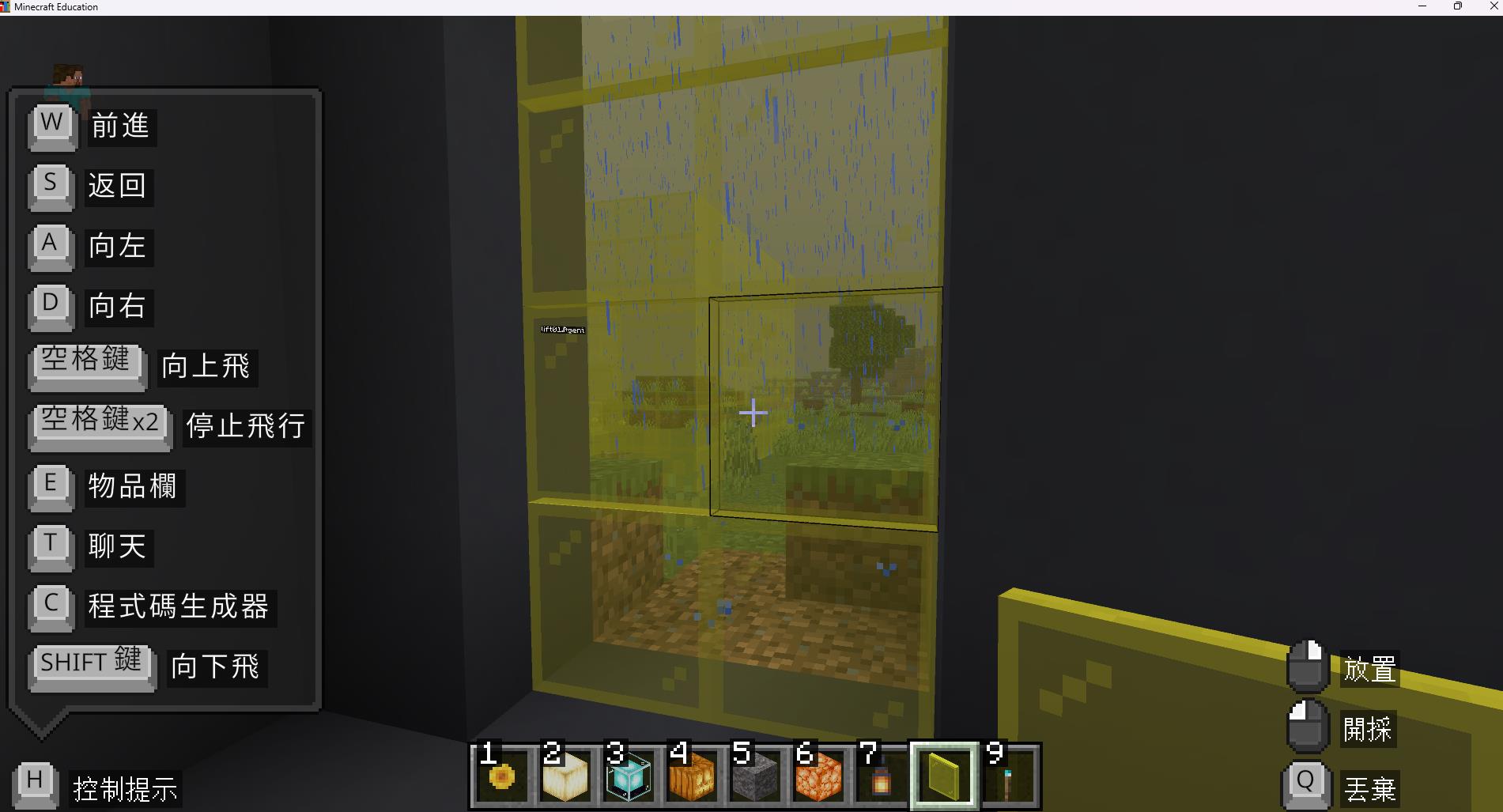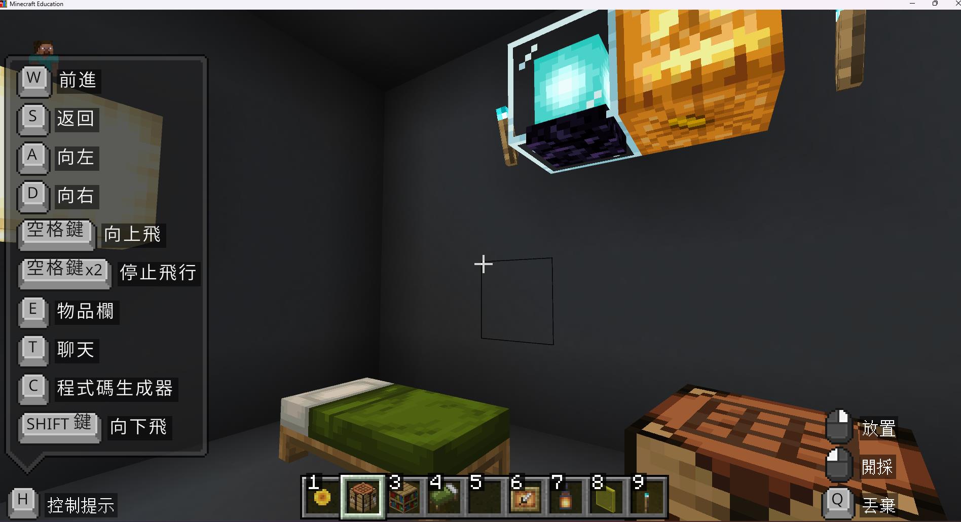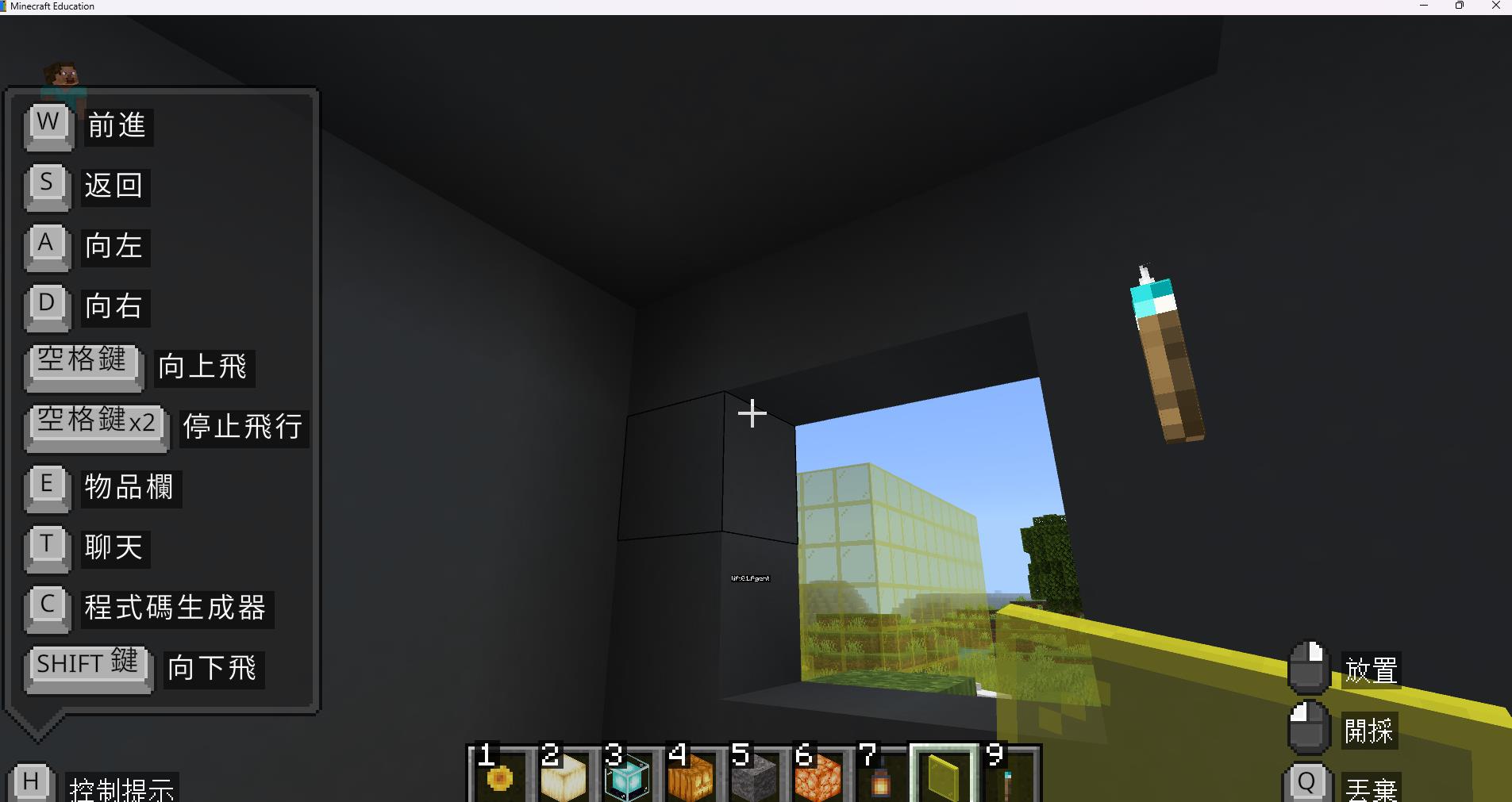 做個門進去房子內,破壞方塊(右鍵),發現房子內是實心的。