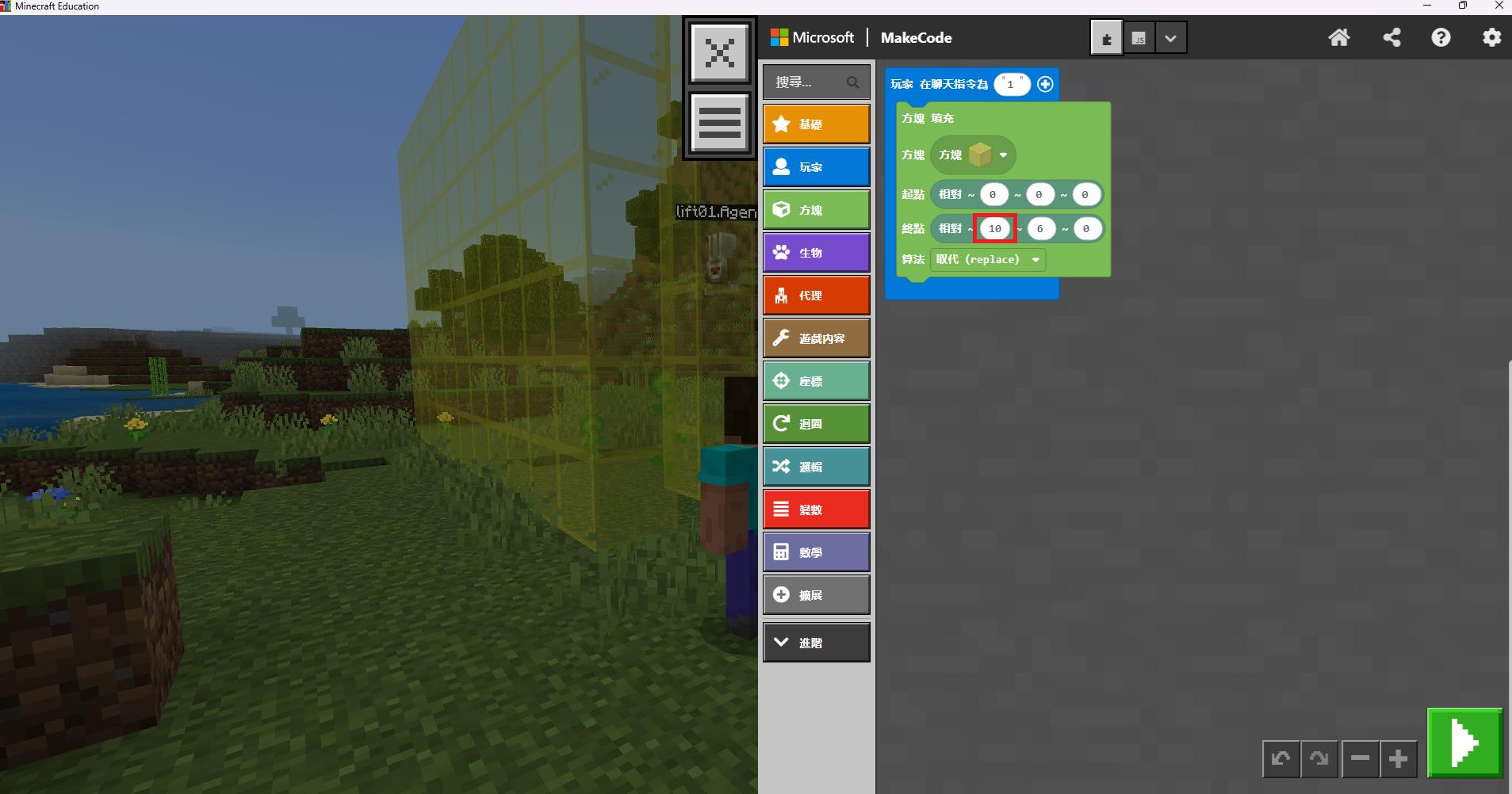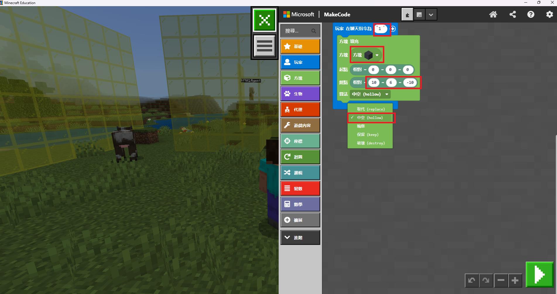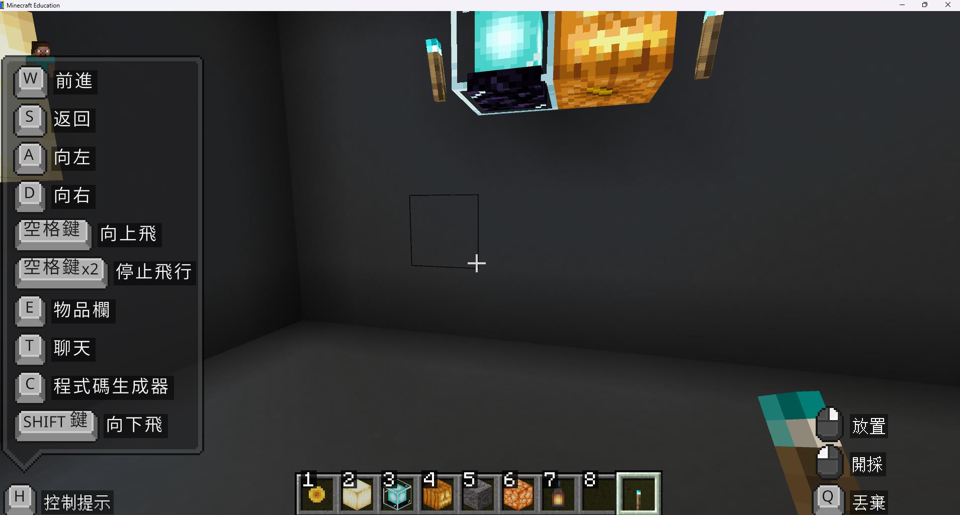 做個門進去房子內,破壞方塊(右鍵),發現房子內是實心的。