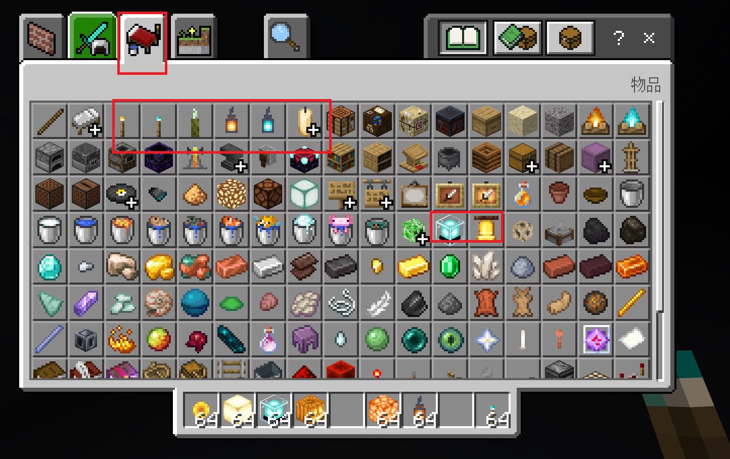 點燈任務:可發光的燈具,放置物品欄(南瓜燈、菌光體、火把、蛙燈等)