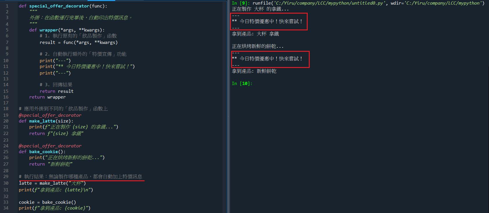 外掛:在函數運行完畢後,自動印出特價訊息。
