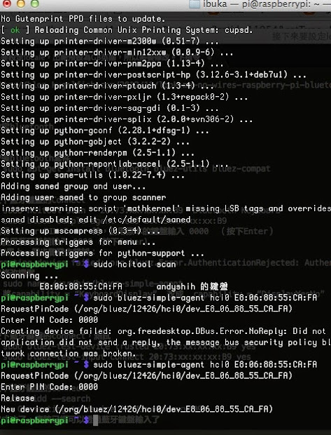sudo bluez-simple-agent hci0 xx:xx:xx:xx:xx:xx