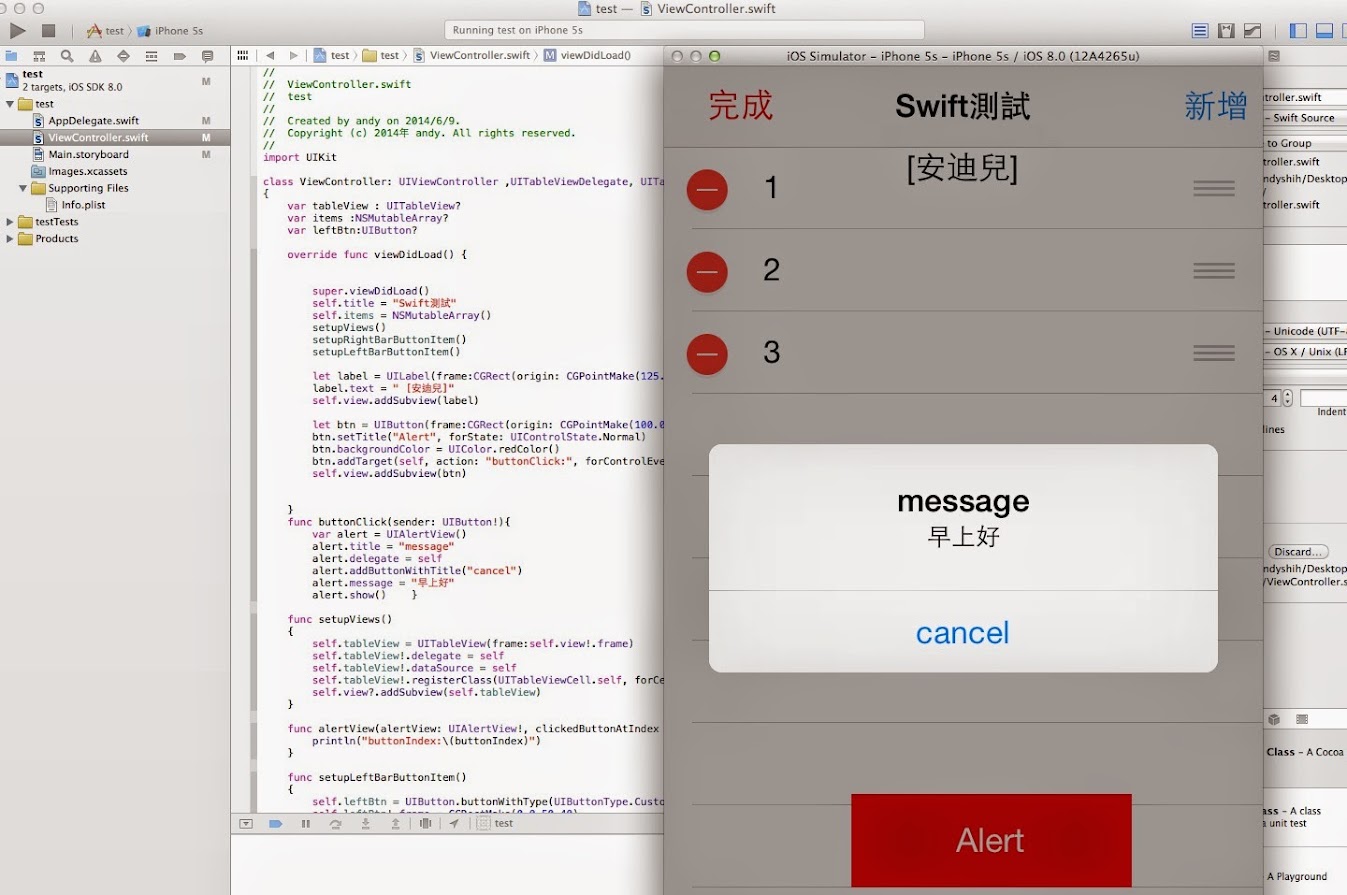 來試寫一個新增刪除列表(UITableView)、和alert訊息看看