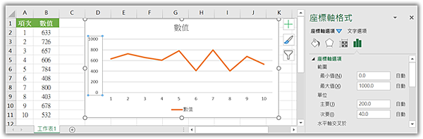 點取「最大值」欄位,輸入「800」,圖表即符合要求400~800之間。