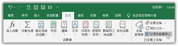 點取「公式 > 從選取範圍建立」圖示。