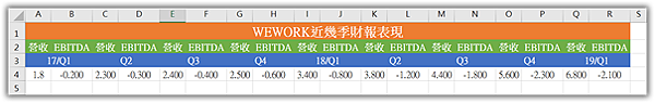 我是英英美代子,公司要我統計WeWork近幾季財報表現,並繪製下圖的商業圖表,Excel是否可以繪製呢?