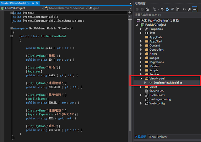 本篇範例採用Code First,故需要建立相關物件與對應的Context