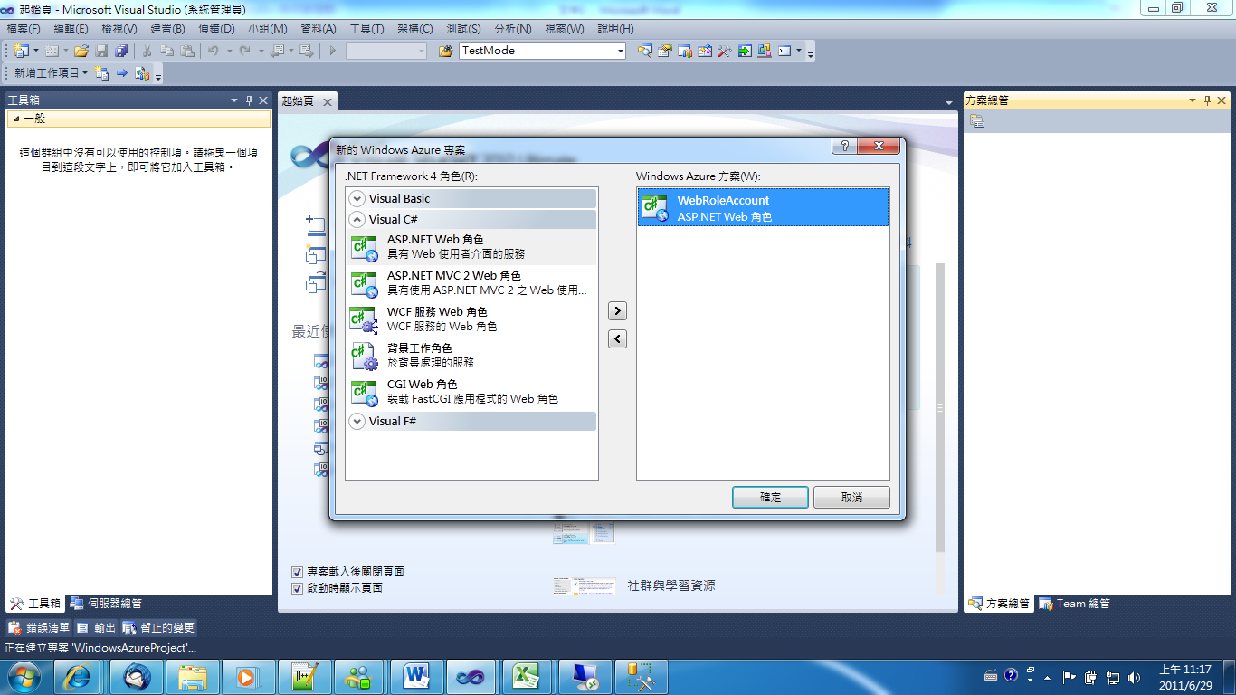 Windows Azure 第一次上雲端 - 2). 建立我的Windows Azure Project