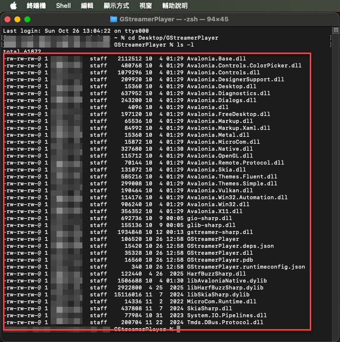 而此 GStreamerPlayer 的 .NET 應用則是在 Windows 當中透過 Visaul Studio 開發完成,並透過 dotnet publish 的指令進行專案的 publish 後,再把 publish 出來的檔案資料放到 macOS 當中,透過 dotnet 來執行此 GStreamerPlayer 的應用。