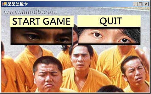 2016-09-03 0011. 記憶卡片遊戲-周星馳電影主題 8898 0 C#學習筆記 2017-11-02 C#學習筆記 剛上研究所時自修程式,閒暇之餘寫出來的小品遊戲。說明如下: 開啟程式MEMORY CARY.exe 檔案,會有兩個選擇 1.點擊左邊周星馳的臉進入遊戲 2.點擊右邊周星馳的臉離開遊戲 進入遊戲後左下角會有開始跟離開的按鈕 遊戲難度為中間讀秒的地方有分10秒、15秒、20秒 按下開始後會先倒數3秒看所有牌面的位置,然後會翻面。玩家找出位置即可。 遊戲下載位置: 點我下載 C# 回首頁