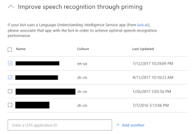 如果 Messaging endpoint 有使用到 LUIS apps,可以在 Bot Framework portal 加入用到的 LUIS apps 讓 Bot 實現最佳的語音識別。