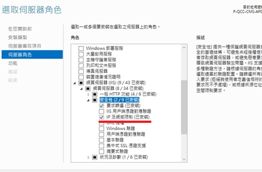 打開網頁伺服器內容,勾選IP及網域限制,按安裝即可
