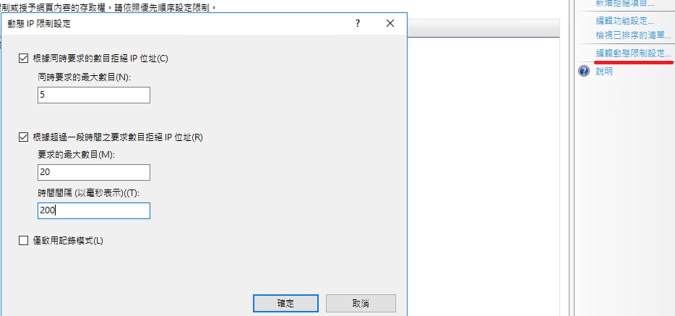 點選右邊的 編輯動態限制設定,並依照上面的規則調整參數,按下確定後即可設定完成