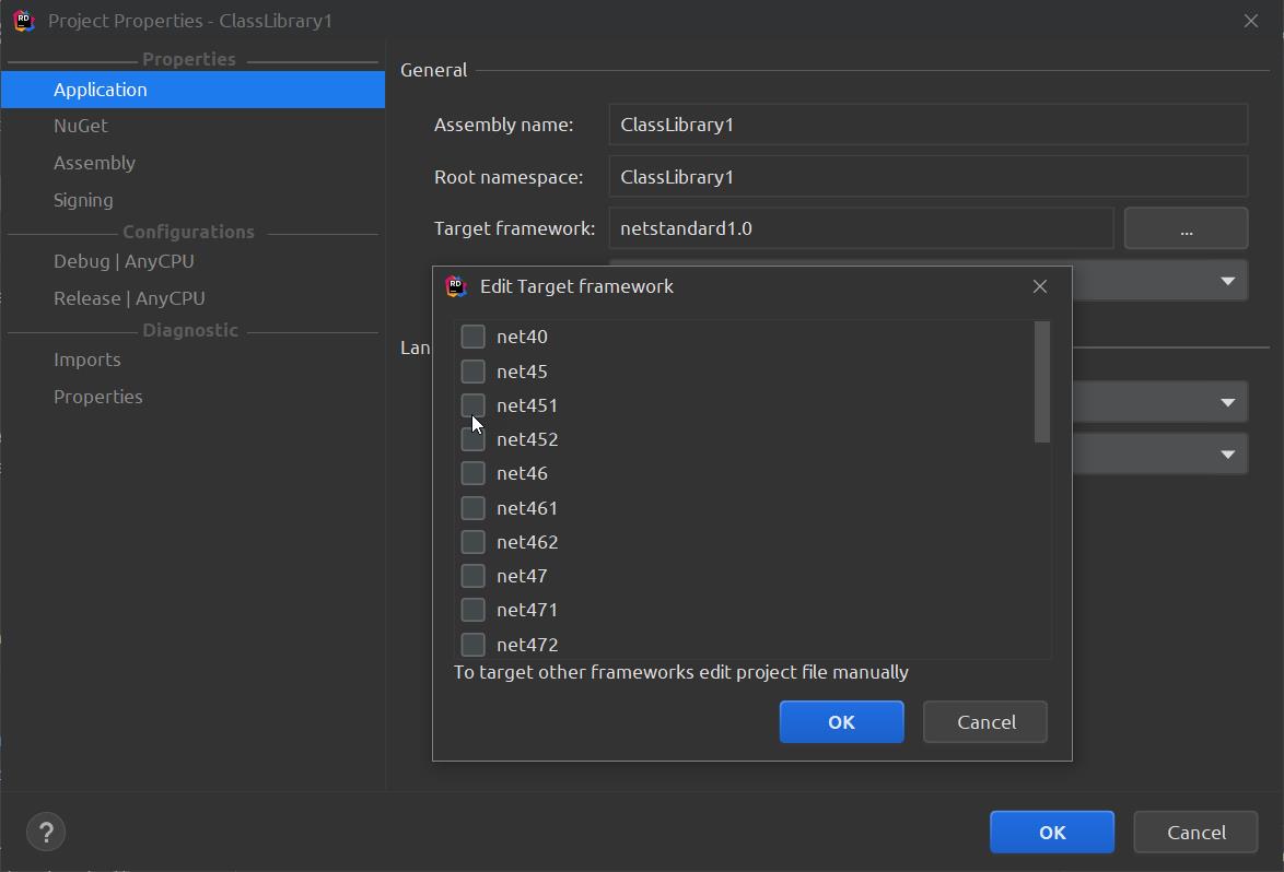 附帶一提,在 Rider 的目標平台可以多選,也就是說你可以用這個專案範本產生出你想要的目標版本