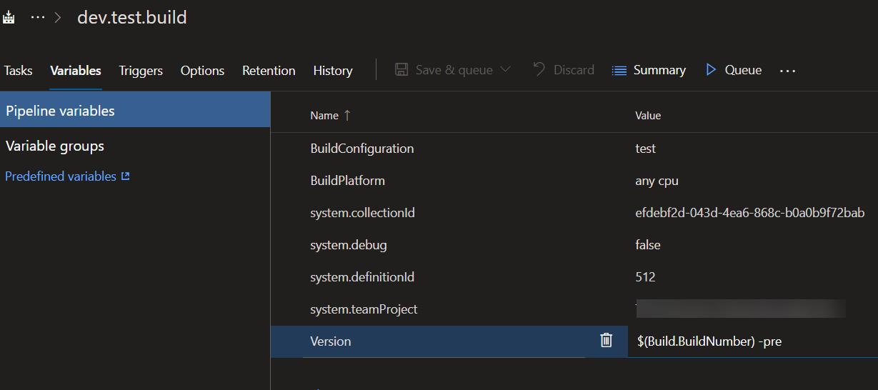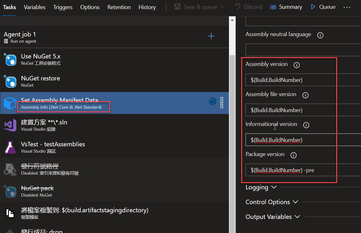 用 Version 變數處理,這裡不需要 Assembly Info Task 了,也不需要 .csproj 裡面的設定,新增一個 Version 的變數
